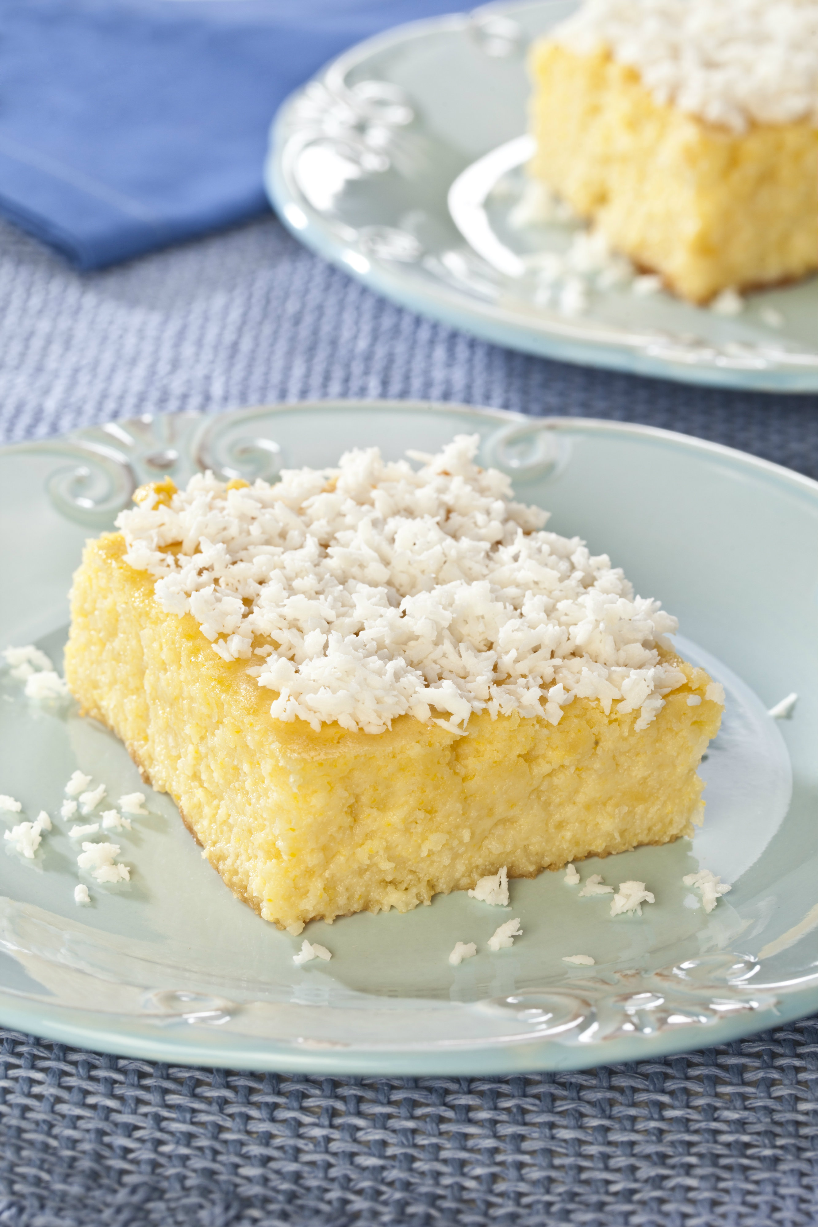 Descongele e pique a mandioca, no liquidificador, bata a mandioca, o milho escorrido, a manteiga, o leite condensado e os ovos. Misture o coco ralado. Em uma assadeira, untada com manteiga, coloque a massa e asse no forno pré aquecido a 200 graus durante 40 minutos ou até dourar. Deixe amornar, desenforme e corte em quadradinhos e decore com coco ralado.