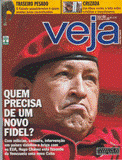 A matéria da revista Veja com data de 4 de maio (quarta-feira) é publicada logo após reportagem do jornal Folha de São Paulo de 1 de maio de 2005, domingo, página A32, assinada pela jornalista Carolina Vila-Nova e intitulada “Populismo radical favorece o terrorismo, alertam EUA“. A matéria é complementada por outra intitulada “Problema exige “resposta militar”, afirma coronel“. A jornalista visitou os EUA e a Colômbia a convite do Departamento de Estado dos EUA. As vozes ouvidas são todas pautadas pelo governo americano, nenhuma voz contrária, ou melhor, nenhuma voz favorável ao presidente venezuelano. A foto ilustrativa mostra Chávez ouvindo atentamente Fidel Castro (Figura 2) Figura 2 ![]()