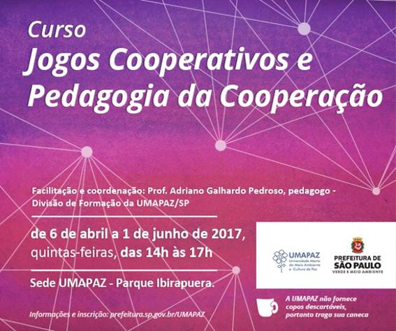 Os Jogos Cooperativos surgiram da preocupação com a excessiva valorização que a sociedade moderna atribui à competição. O Curso ‘Jogos Cooperativos e Pedagogia da Cooperação’ visa proporcionar aos/as participantes a vivência de situações onde a cooperação possa ser identificada e reconhecida como essencial para a construção de relações cotidianas saudáveis, construtivas e de respeito mútuo. Isso por meio de diferentes jogos cooperativos.