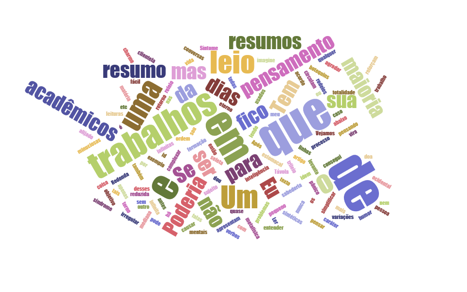 Após minuciosas leituras em eterno método cíclico desses resumos, eu fico com síndrome do pânico, com “gastura” no estômago e dor de cabeça. Sinto-me alijado do processo. Um ser qualquer sem sabedoria. Sinto-me um sujeito em franco processo de regressão linear múltipla. Se não consegui entender nem o resumo, imagine a totalidade do texto, do artigo, do trabalho!