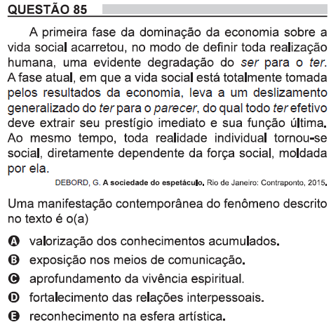 O pensador Guy Debord foi tema do Enem (questão 85). O que evidencia a contemporaneidade do pensamentos do autor francês. Quem quiser saber mais deve ler A Sociedade do Espetáculo ( á venda nas livrarias e sites) e também se aprofundar mais com Debord, 50 anos depois