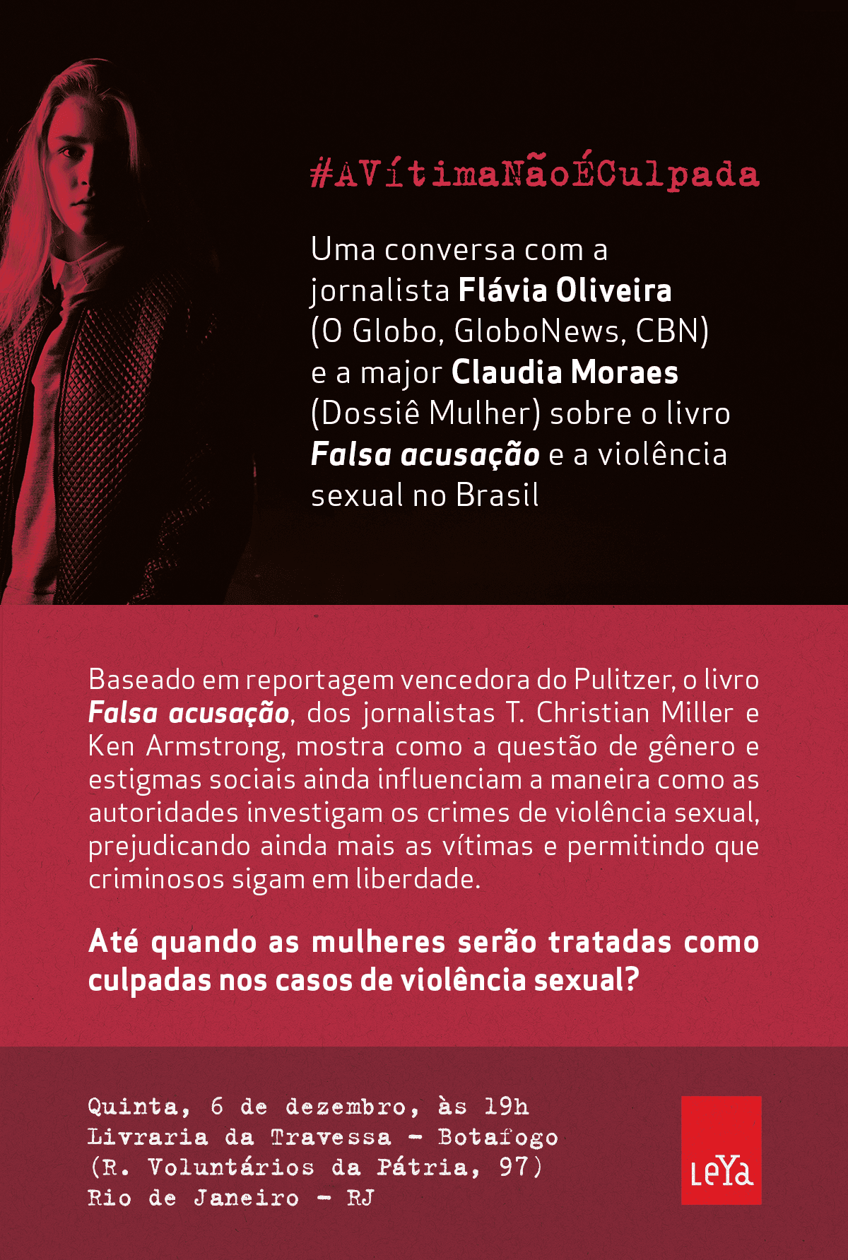 Um livro eletrizante, importante e perturbador, Falsa acusação é baseado numa história real e num artigo vencedor do Prêmio Pulitzer de jornalismo investigativo. A partir dos arquivos da investigação policial e de entrevistas com os envolvidos, os jornalistas T. Christian Miller e Ken Armstrong apresentam uma história cheia de reviravoltas, dúvidas, estigmas, mentiras e, acima de tudo, um profundo desejo de justiça, fazendo também uma análise da maneira ultrajante como as mulheres são tratadas quando denunciam casos de violência sexual. Narrado em ritmo de thriller, Falsa acusação está sendo adaptado pela Netflix na série Unbelievable, prevista para estrear em 2019.