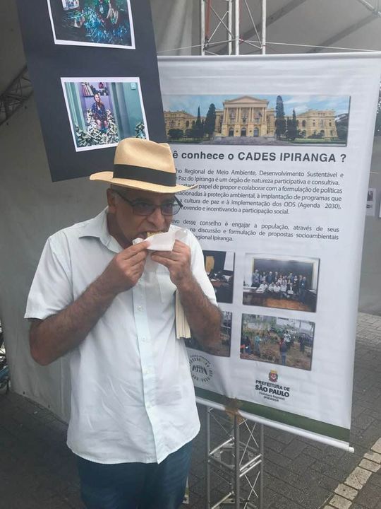 Experimentando um bolo com cobertura de grilo. Guloseima feita pelo @caseoliveira Bugs Cook! Uma delicia, com destaque as notas de gengibre. Hoje no Parque da independência.