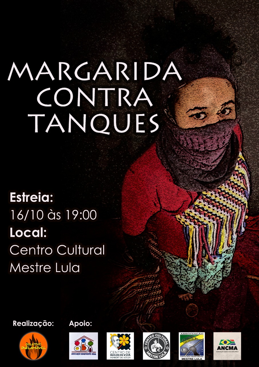 Com público limitado por meio de convites Coletivo Inflamável faz estreia presencial do espetáculo Margarida Contra Tanques.