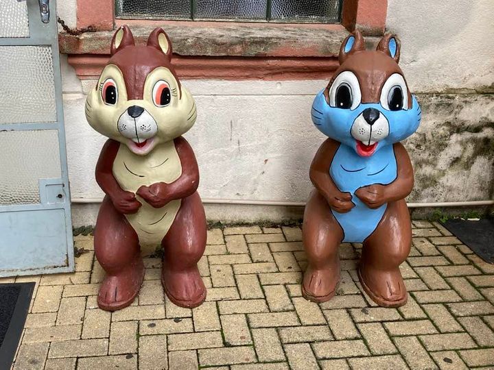 #paratodosverem #pracegover #paracegosverem Abaixo uma foto tirada da entrada da #subprefeituraipiranga, na cidade de São Paulo. São dois exemplares, creio que de gesso, representando dois esquilos. O esquilo da direita foi pintado de marrom e azul, um azul mais celeste, tem os lábios bem vermelhos, um focinho com um ponto preto e branco. O exemplar de esquilo da direita está representado nas cores marrom e creme. Eu tenho certa dificuldade em identificar cores… os olhos tem detalhes em preto e vermelho. Parecem passar um ar de bom humor (coisa difícil de ser encontrada) e que estão sempre te recebendo com o coração aberto. Ambos estão de passagem, aguardam a finalização de uma praça revitalizada e adequada para sua moradia. Ambas foram vítimas da depredação que humanos praticam em animais que não concordam com suas opiniões ….