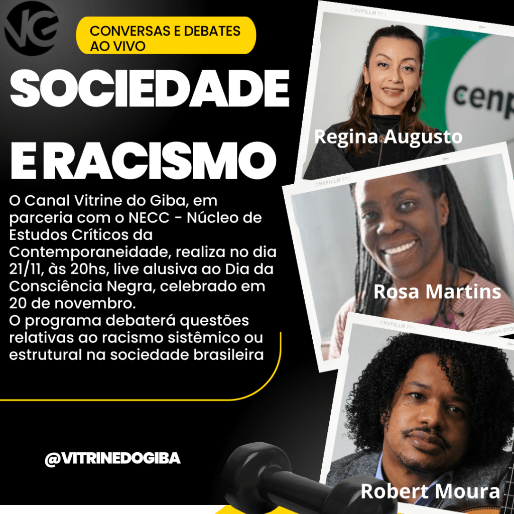 Atento às questões que afetam à sociedade brasileira como um todo, o Canal Vitrine do Giba realiza, às 20 desta segunda-feira (21), live alusiva ao Dia da Consciência Negra, celebrado em 20 de novembro. O programa, em parceria com o NECC – Núcleo de Estudos Críticos da Contemporaneidade, debaterá questões relativas ao racismo sistêmico ou estrutural na sociedade brasileira.