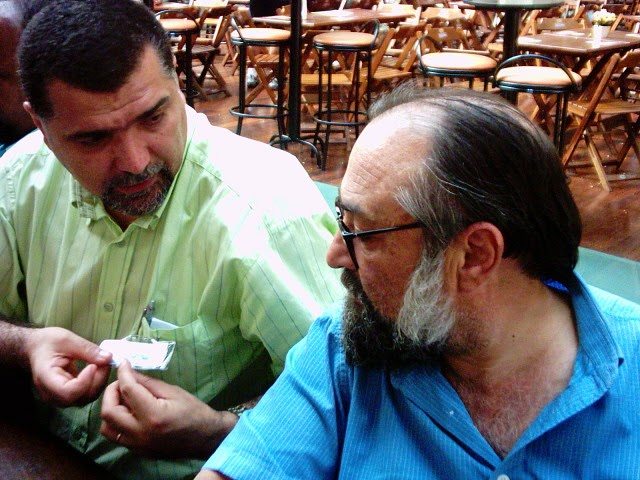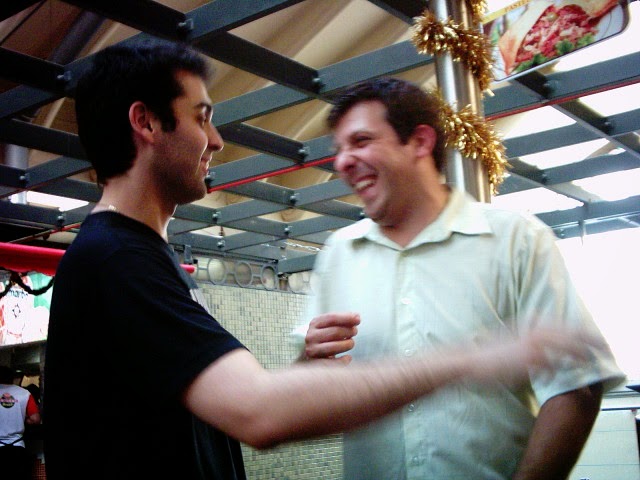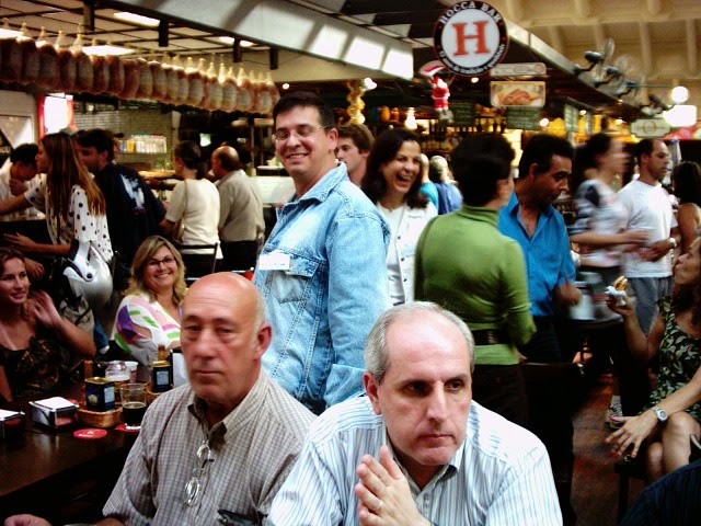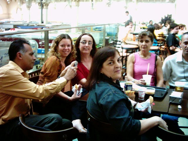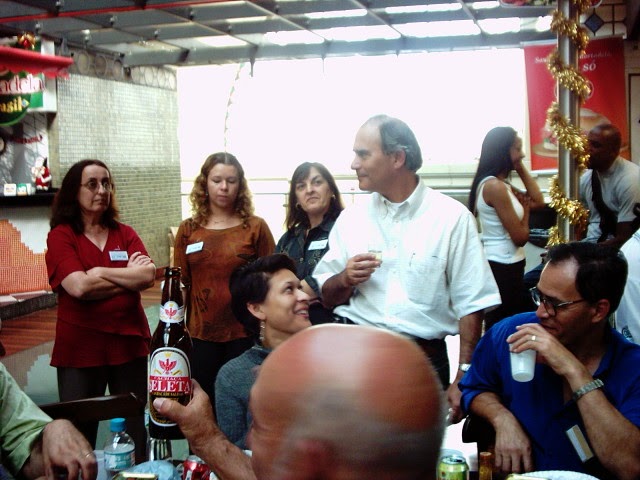 As fotos são de um janeiro ou dezembro, finalizando mais uma etapa de trabalho. Aqui, o cenário é o Mercado Municipal Paulistano que acabara de ser reestilizado, com a criação do mezzanino (na gestão Marta Suplicy). Não lembro o dia exato. mas as fotos que tirei, então de uma incipiente máquina digital de pequeno porte, já é na gestão José Serra, tendo como supervisor de Abast (supervisão de Abastecimento que encerrava o ciclo da Semab (secretaria de abastecimento) engenheiro agrônomo Beto Graziano, que ficou um bom tempo como supervisor de abastecimento da Secretaria de Coordenação das Subprefeituras.