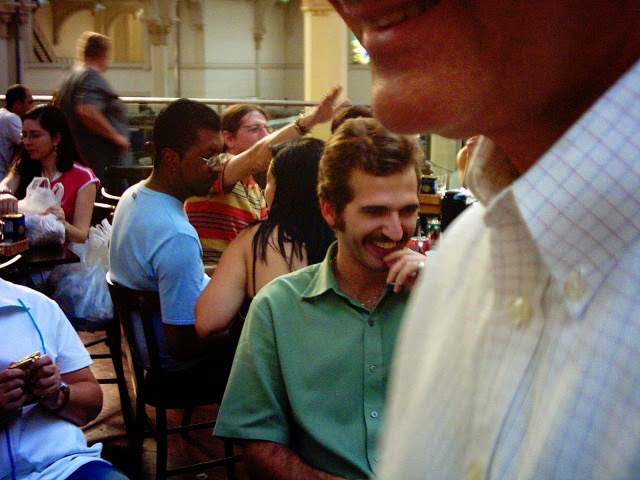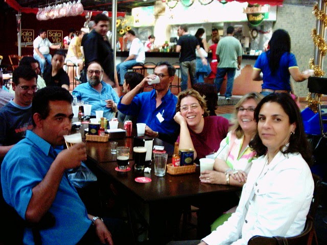 As fotos são de um janeiro ou dezembro, finalizando mais uma etapa de trabalho. Aqui, o cenário é o Mercado Municipal Paulistano que acabara de ser reestilizado, com a criação do mezzanino (na gestão Marta Suplicy). Não lembro o dia exato. mas as fotos que tirei, então de uma incipiente máquina digital de pequeno porte, já é na gestão José Serra, tendo como supervisor de Abast (supervisão de Abastecimento que encerrava o ciclo da Semab (secretaria de abastecimento) engenheiro agrônomo Beto Graziano, que ficou um bom tempo como supervisor de abastecimento da Secretaria de Coordenação das Subprefeituras.