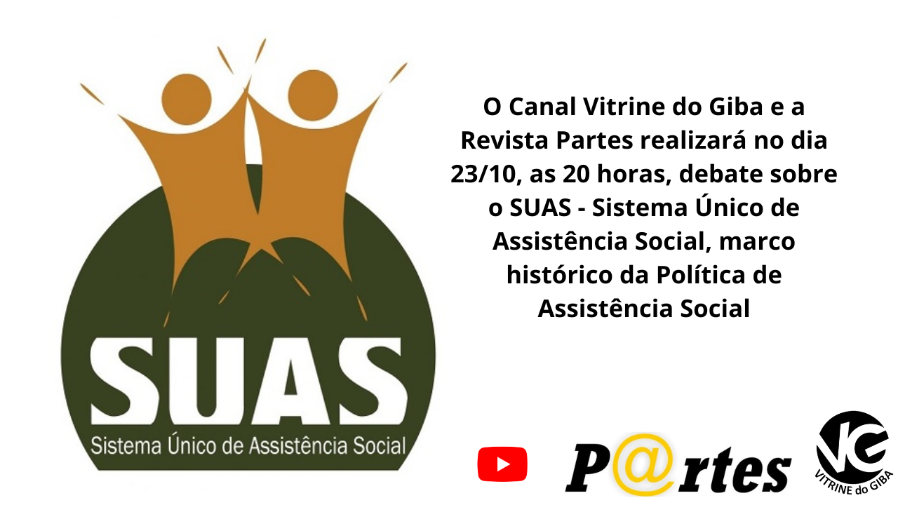 O Canal Vitrine do Giba e a Revista Partes realizará no dia 23/10, as 20 horas, debate sobre o SUAS – Sistema Único de Assistência Social, marco histórico da Política de Assistência Social. O SUAS é um sistema público com modelo de gestão participativa e descentralizada e que organiza os serviços de Assistência Social nas três esferas de governo (União, Estados e Municípios). O SUAS é o resultado histórico de marcos normativos, principalmente ordenados a partir da Constituição Federal de 1988.