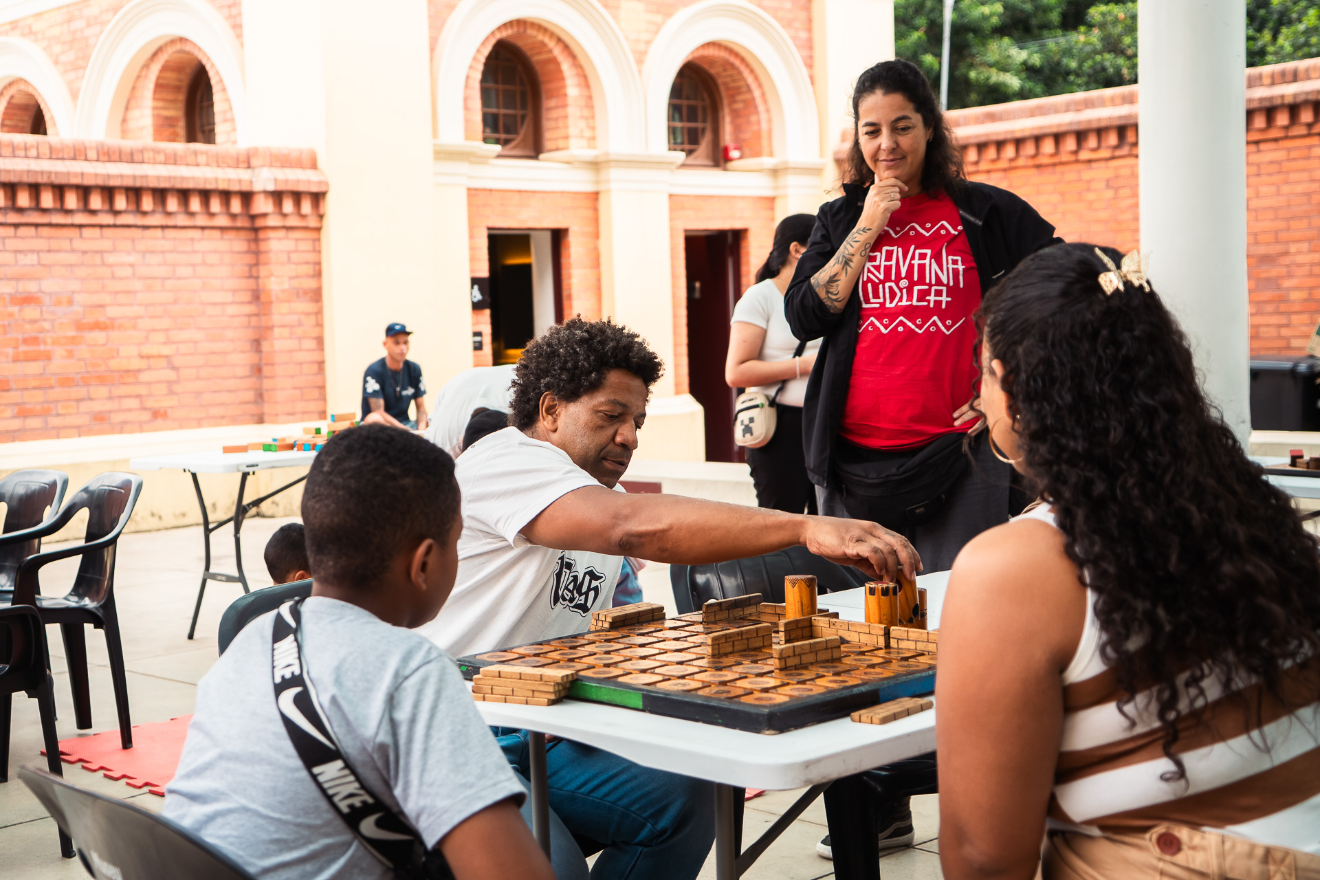 A Caravana Lúdica distribui jogos e tabuleiros tradicionais pelo Pátio B do Museu aos domingos no projeto Domingo no Museu. Das 11h às 16h, crianças e suas famílias podem brincar livremente pelo espaço, sem necessidade de retirar ou reservar ingresso.