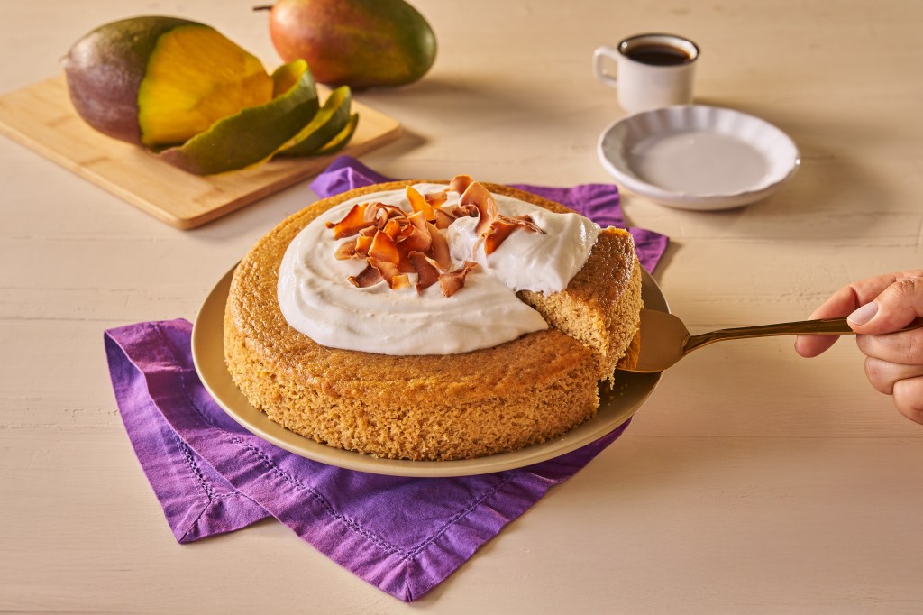 BOLO DE CASCA DE MANGA COM COBERTURA DE IOGURTE