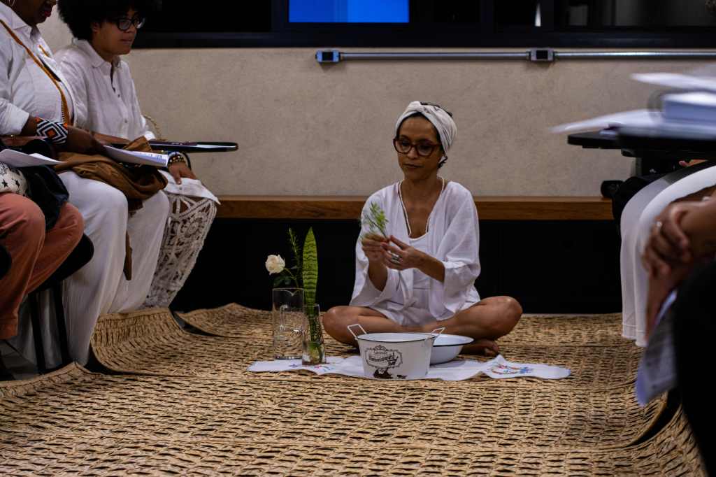 A mostra é resultado de um processo formativo e coletivo, realizado ao longo de 2024, dentro de uma residência voltada exclusivamente a pessoas negras na Casa Sueli Carneiro. Os participantes receberam acompanhamento curatorial, participaram de oficinas, encontros teóricos, vivências, além de acesso exclusivo ao acervo da Casa, conjugando pesquisa, memória e experimentação a partir das contribuições do pensamento de Sueli Carneiro, do feminismo negro brasileiro e das diásporas africanas.