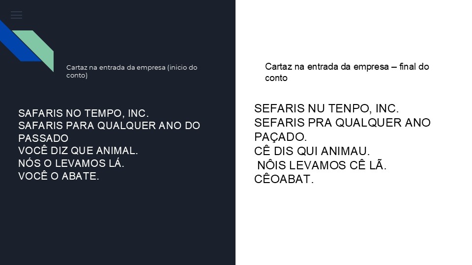 Uma flegma quente acumulou-se na garganta de Eckels; engoliu e empurrou-a para baixo. Os músculos ao redor de sua boca formaram um sorriso enquanto ele estendeu sua mão lentamente pelo ar, e naquela mão, balançava-se um cheque de dez mil dólares, para o homem atrás da escrivaninha.