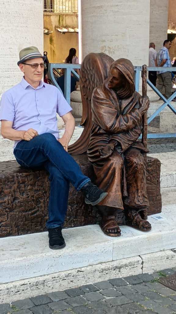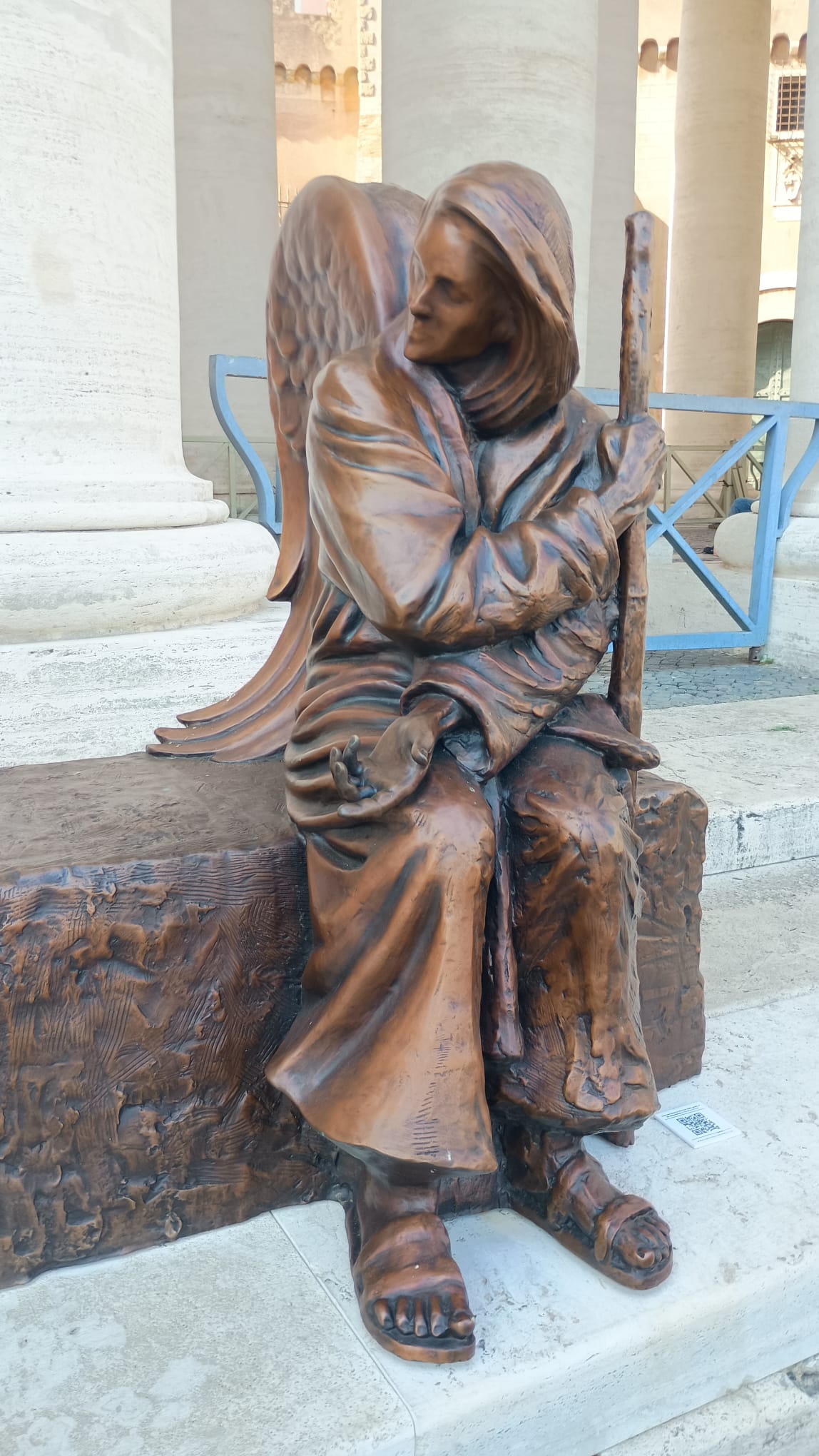 A escultura de bronze do artista canadense, Timothy Paul Schmalz, autor de uma série de obras que retratam passagens das escrituras entre as quais o Barco com migrantes (Angels unaware) colocado na Praça S. Pedro em 2019. A obra traz uma mensagem significativa para o mundo diante da xenofobia e aversão aos estrangeiros, aos diferentes, aos pobres, aos migrantes. “Não vos esqueçais da hospitalidade: alguns, praticando-a, acolheram sem o saber anjos” (Heb 13,2).