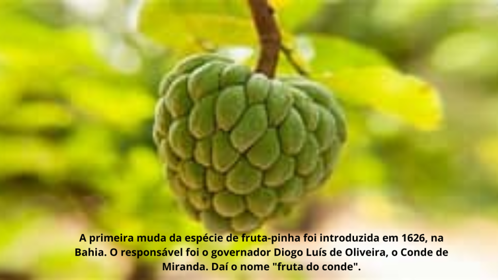 Originária das Antilhas, foi trazida ao Brasil em 1626 pelo Conde de Miranda, daí o nome “fruta-do-conde”.