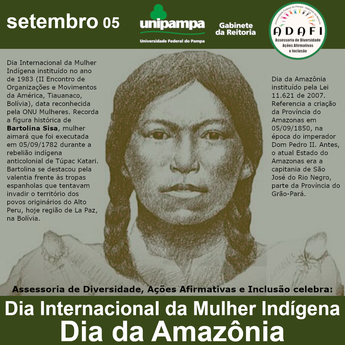 - Homenageia Bartolina Sisa, líder indígena aimará, assassinada em 5 de setembro de 1782 por lutar contra o domínio colonial espanhol.