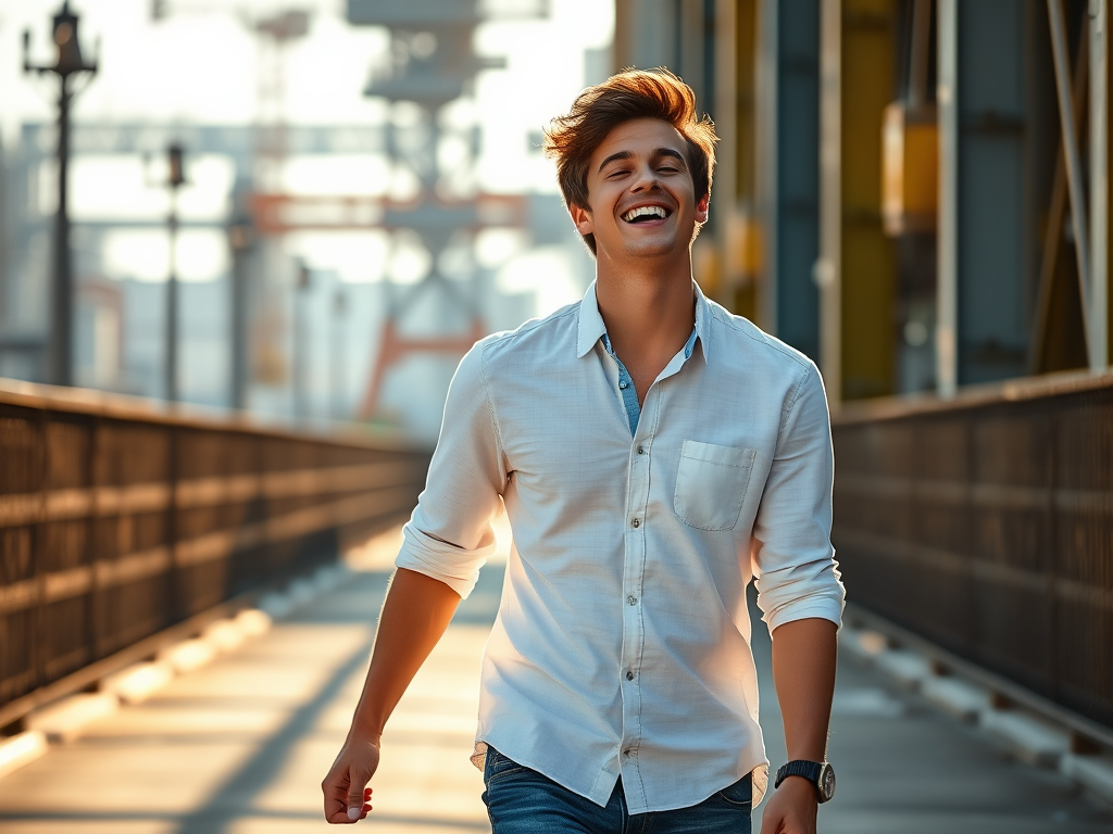 Distribuía sorrisos aos transeuntes; no rosto, uma presença constante de alegria, um ar confiante — embora, no fundo, inseguro.